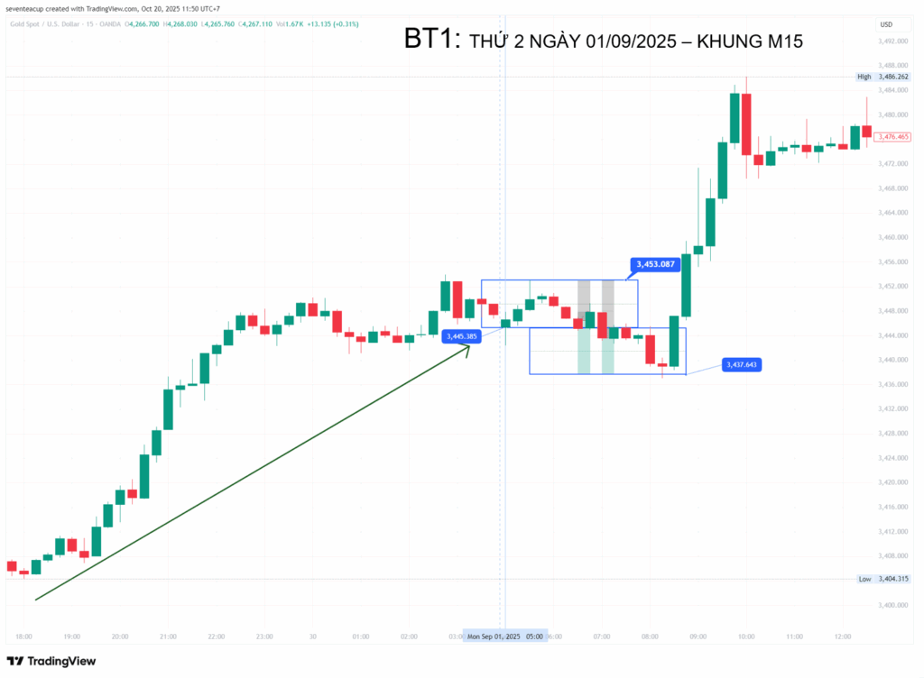 Người mua M1 chỉ xuất hiện khi giá phá vỡ đường cản nối các đỉnh cũ lúc 18:45