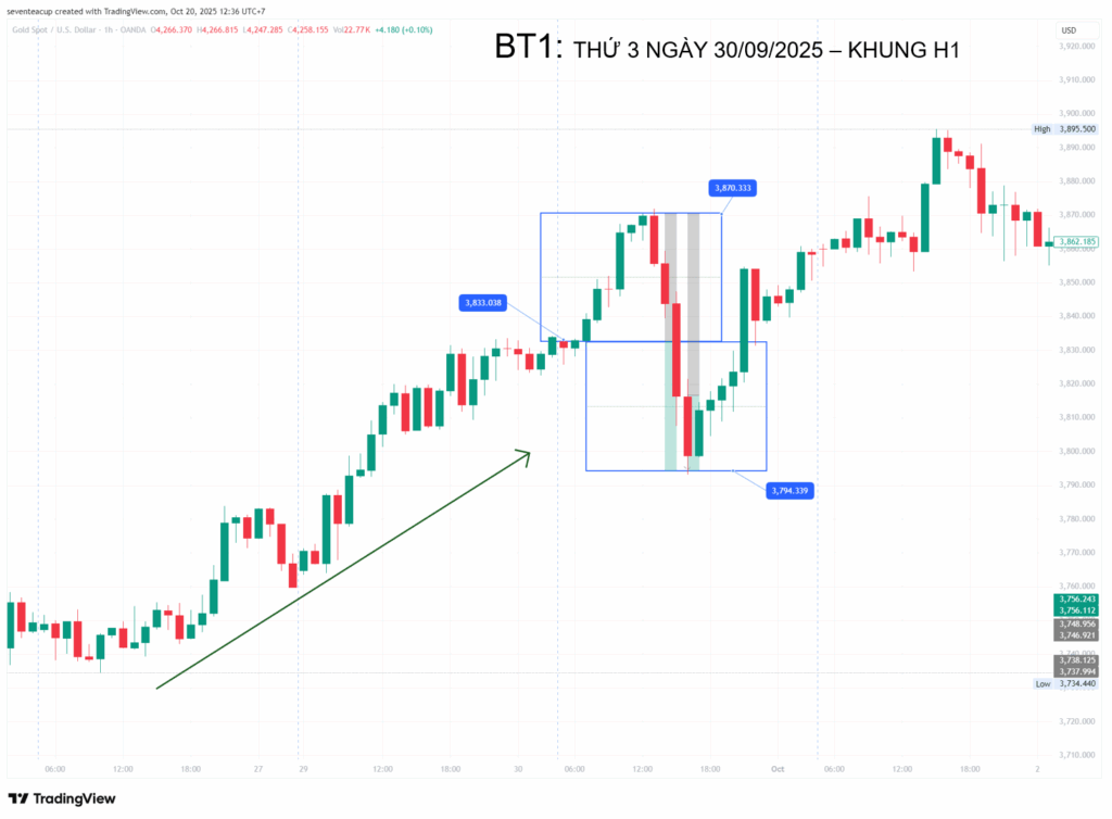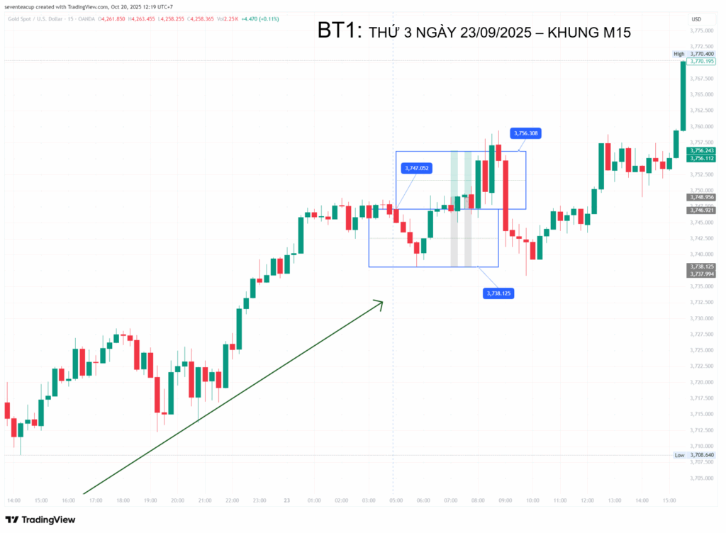 Mô hình vùng tối xuất hiện khi nến xanh phá qua giá mở cửa 3747 (vùng cản).