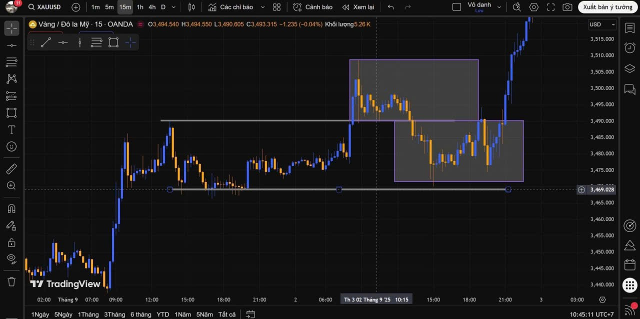 Quan sát biểu đồ ở khung M15 cuối tháng 8 ta sẽ thấy giá đang có xu hướng tăng mạnh mẽ.