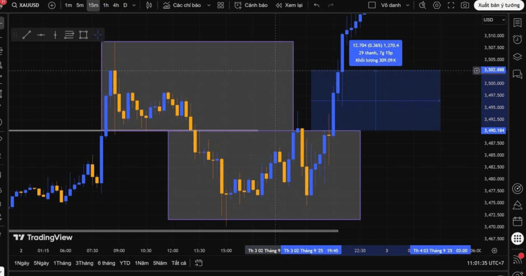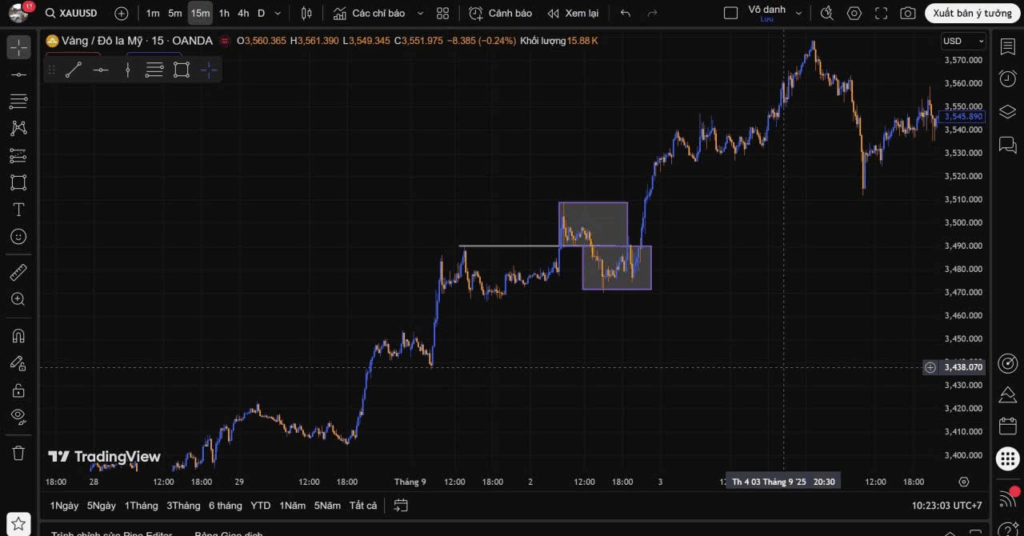 + Nếu xem khung Phút (M1, M5): Khoảng thời gian quanh 7:45 sáng.