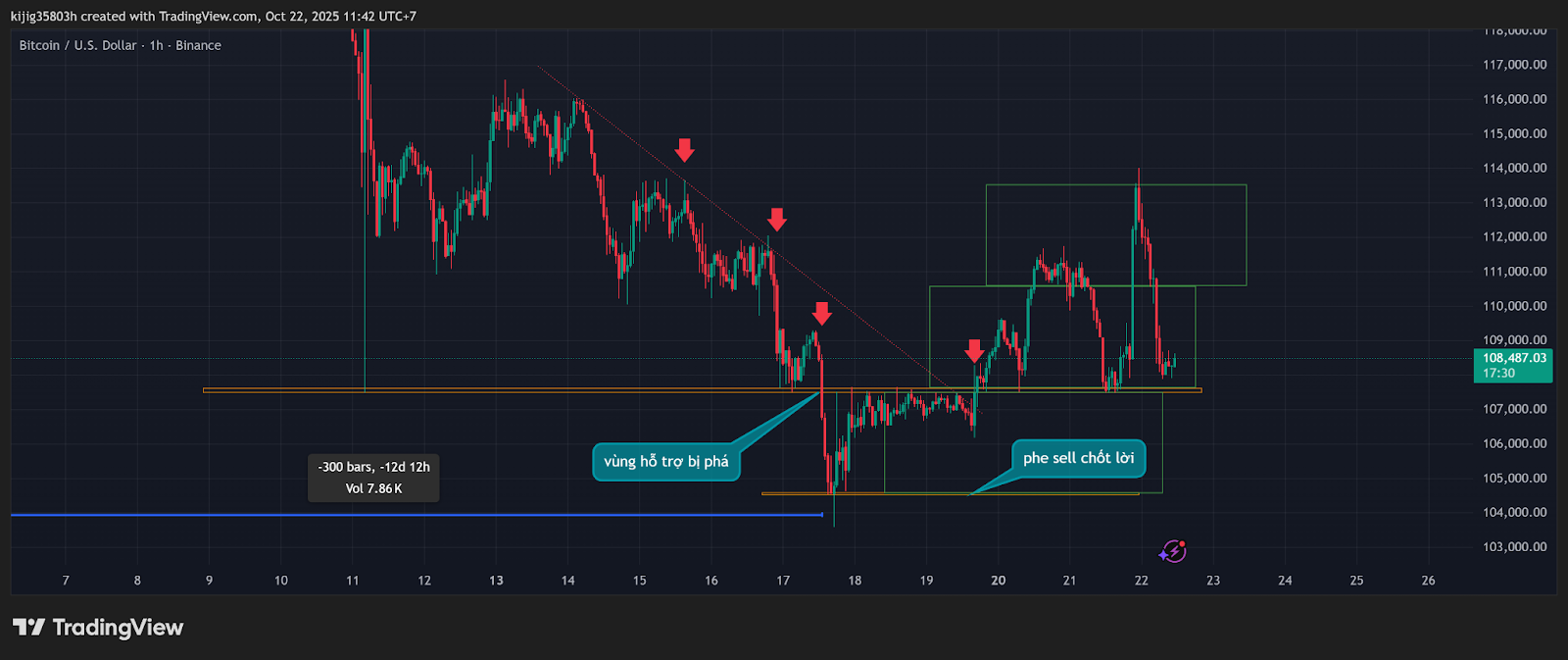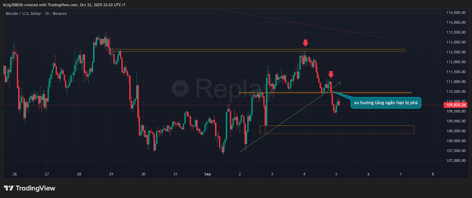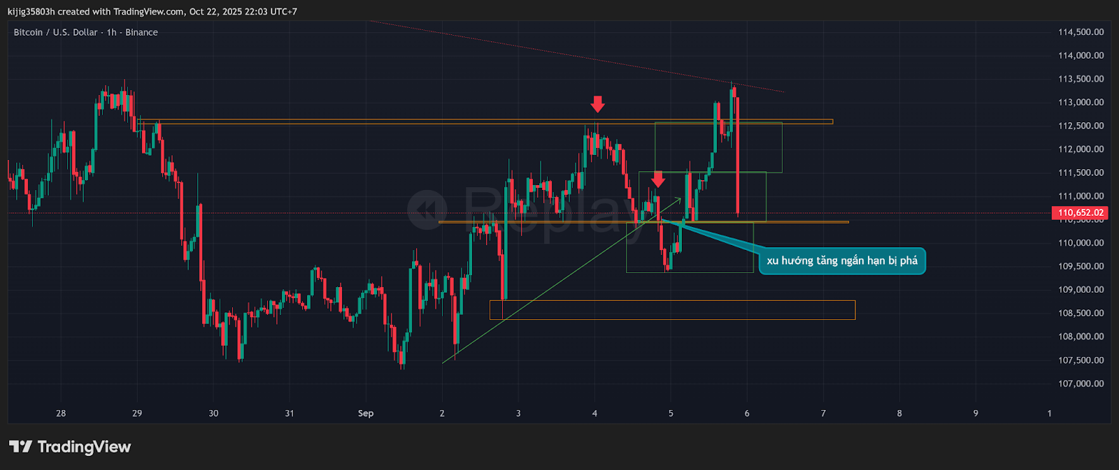 xu hướng: tăng bị phá vỡ -> giảm